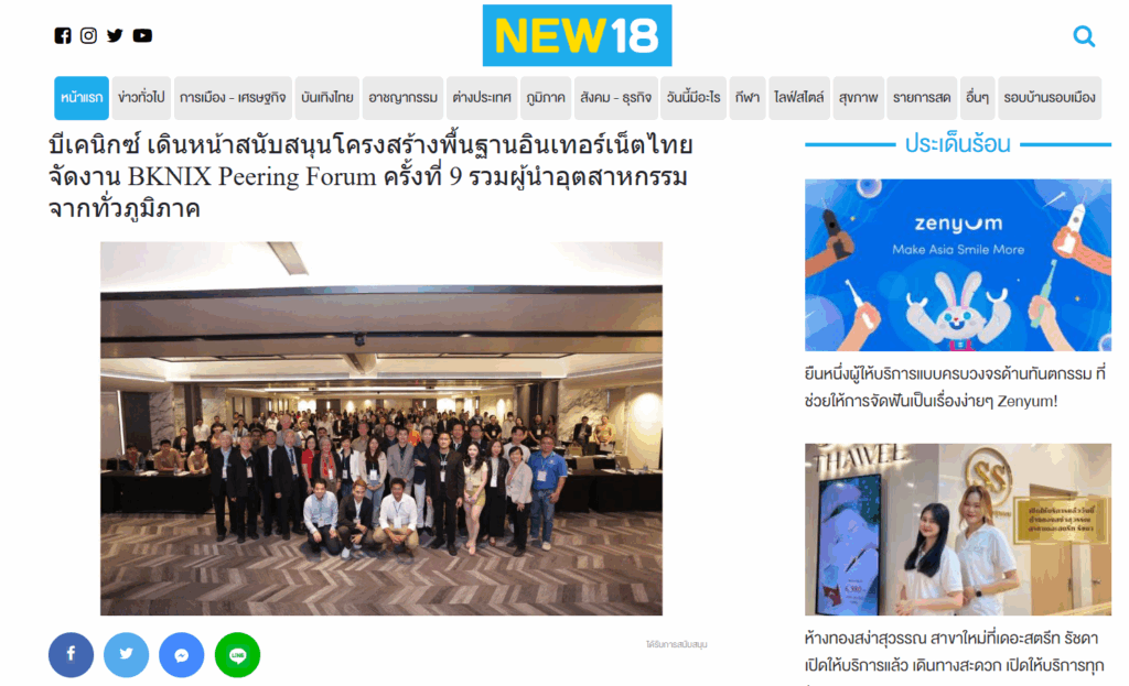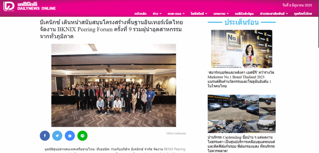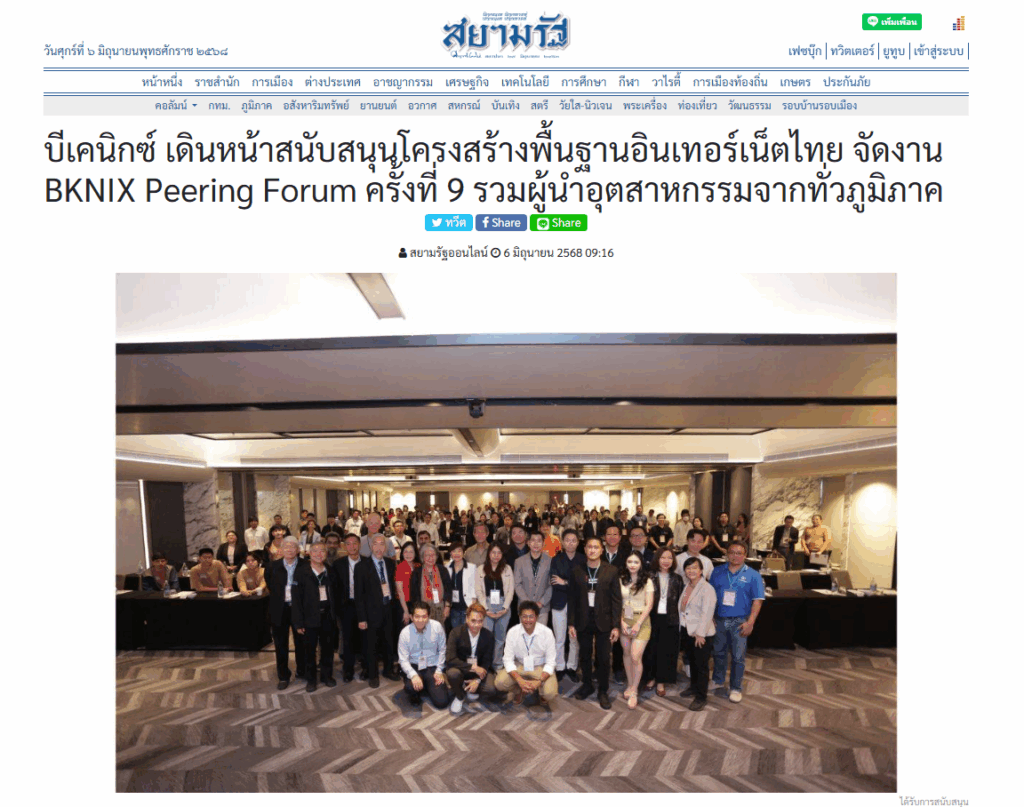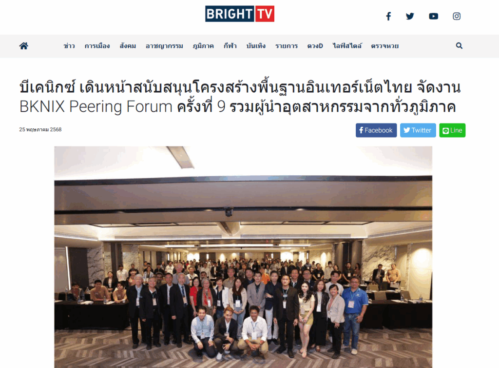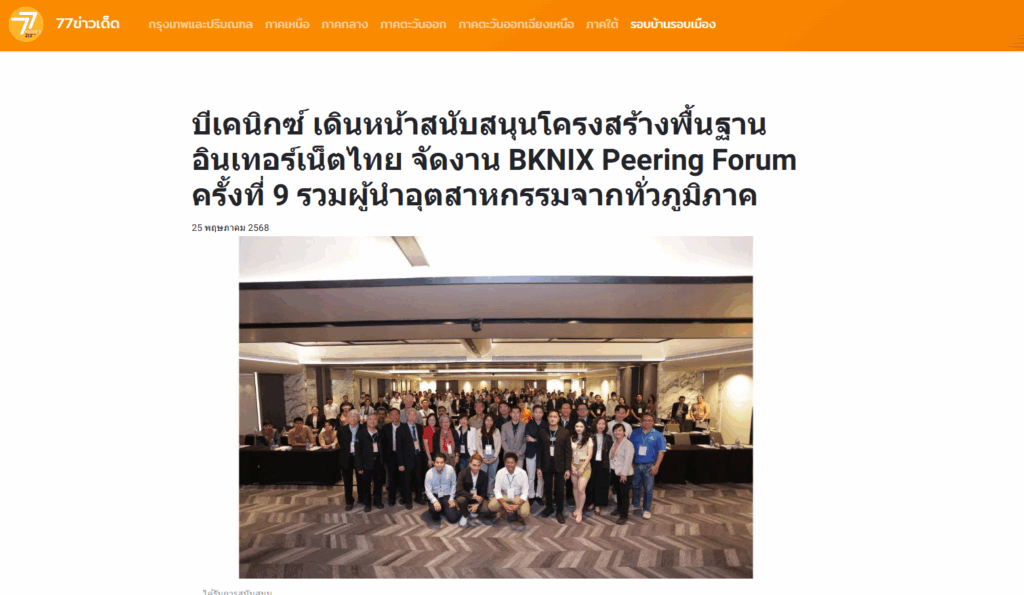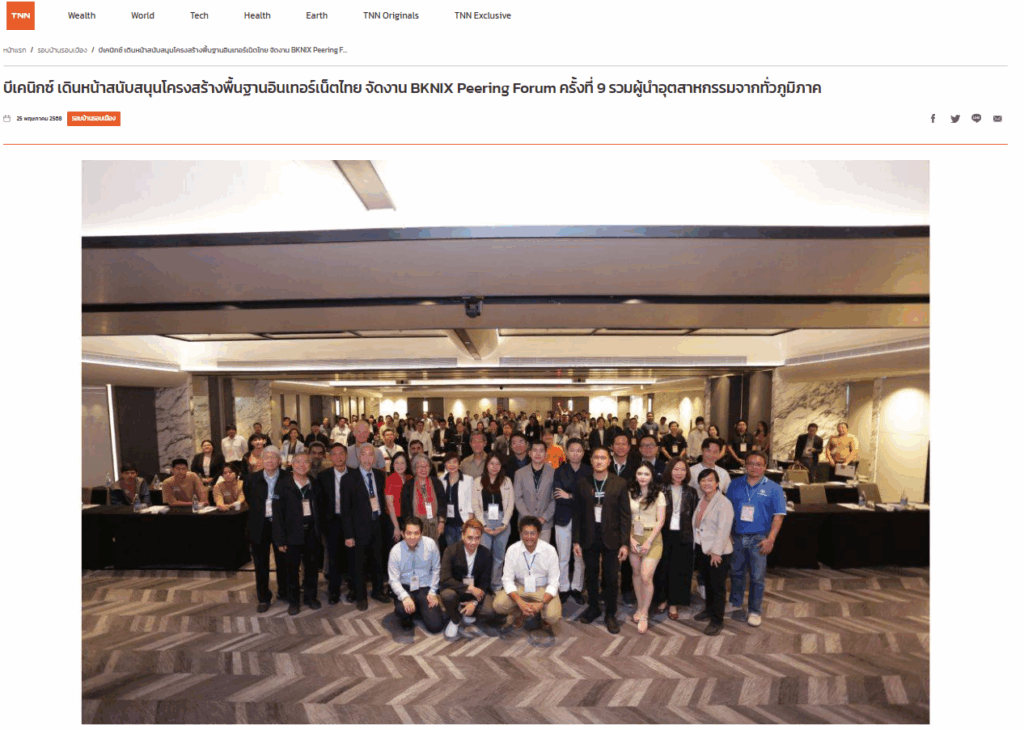 รวมข่าวบีเคนิกซ์ เดินหน้าสนับสนุนโครงสร้างพื้นฐานอินเทอร์เน็ตไทย จัดงาน BKNIX Peering Forum ครั้งที่ 9 รวมผู้นำอุตสาหกรรมจากทั่วภูมิภาค