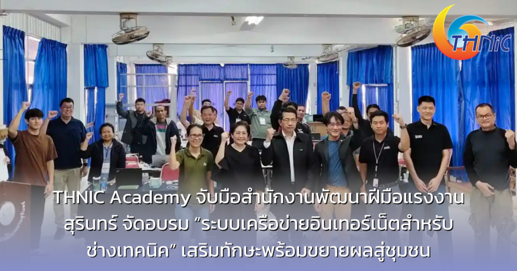 THNIC Academy จับมือสำนักงานพัฒนาฝีมือแรงงานสุรินทร์ จัดอบรม “ระบบเครือข่ายอินเทอร์เน็ตสำหรับช่างเทคนิค” เสริมทักษะพร้อมขยายผลสู่ชุมชน