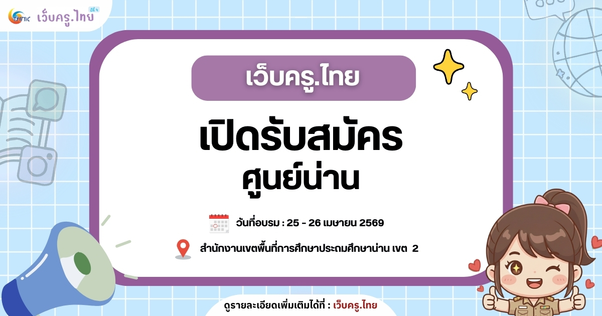 เปิดรับสมัคร หลักสูตรเว็บครู.ไทย ศูนย์น่าน : อบรมเชิงปฏิบัติการการสร้างเว็บไซต์ด้วยชื่อโดเมน .th และ .ไทย สำหรับครู
